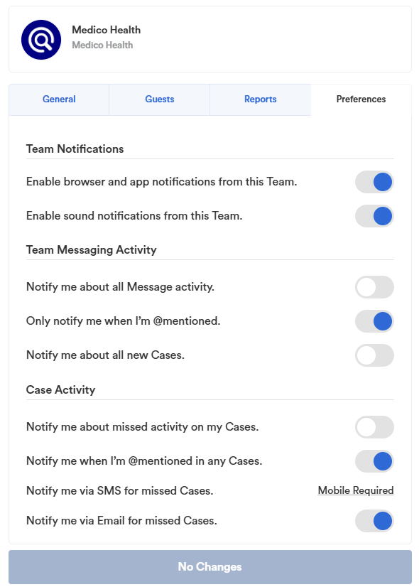 💡Team toggles override everything below. If “Enable notifications from this Team” is off, no Message/Case/Patient alerts are delivered from this Team.